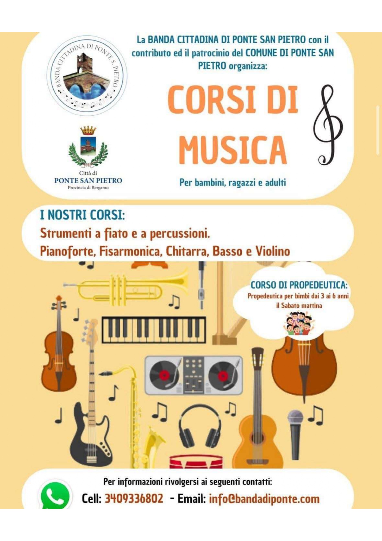 Corsi di musica organizzati dalla Banda cittadina di Ponte San Pietro per bambini, ragazzi e adulti.