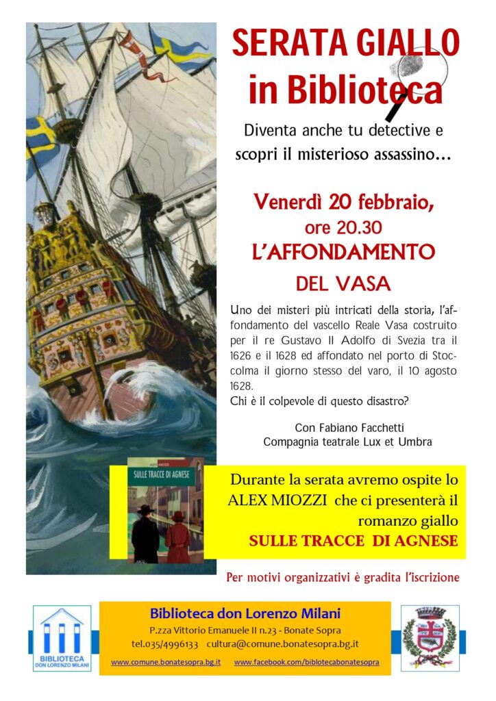 Prima serata in giallo del 2026 con”Serata in giallo: l’affondamento del Vasa Uno dei misteri più intricati della storia, l’affondamento del vascello Reale Vasa costruito per il re Gustavo II Adolfo di Svezia ed affondato nel porto di Stoccolma il giorno stesso del varo, il 10 agosto 1628. Chi è il colpevole di questo disastro? […]