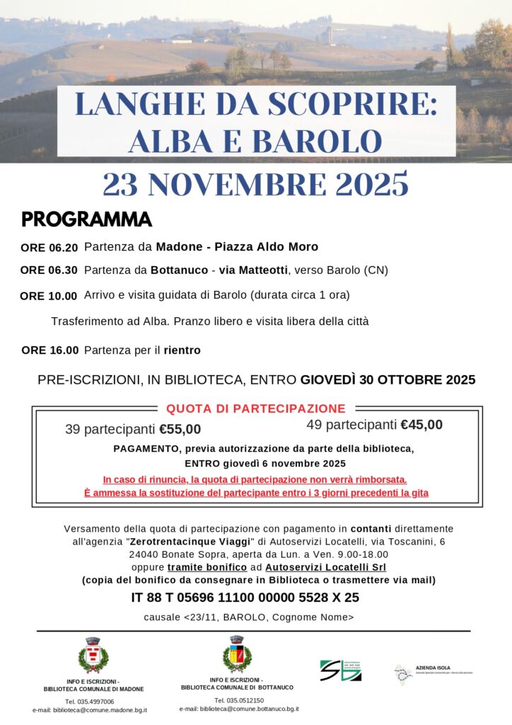 Una serie di 6 incontri patrocinati dal comune di Valbrembo destinati alla conoscenza delle diverse forme di conflitto e violenza che sono apparsi nella storia umana e delle modalità con cui le diverse società si sono organizzate per prevenirli e contenerli. sabato 25 ottobre ore 16:00 alle ore 18:00 sabato 15 novembre ore 16:00 alle […]