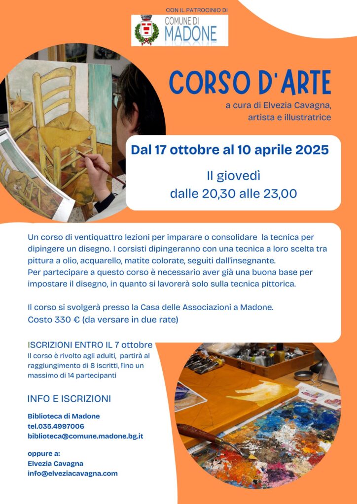 il giovedì dalle 20.30 alle 23.00 presso la Casa delle Associazioni a Madone Un corso di ventiquattro lezioni per imparare o consolidare la tecnica perdipingere un disegno. I corsisti dipingeranno con una tecnica a loro scelta trapittura a olio, acquarello, matite colorate, seguiti dall’insegnante.Per partecipare a questo corso è necessario aver già una buona base […]