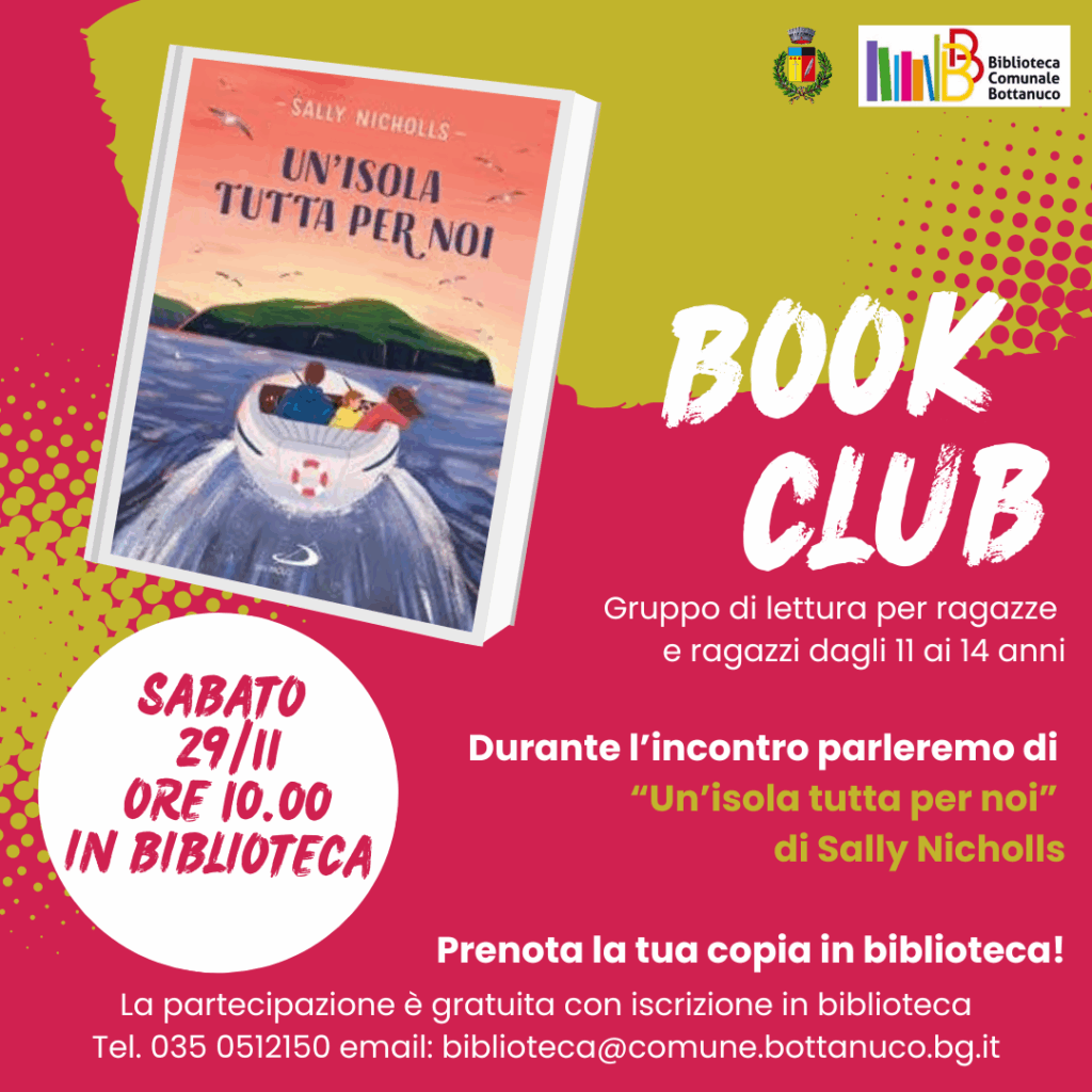 Il gruppo di lettura per ragazzi della biblioteca di Bottanuco. Ti aspettiamo sabato 29/11 alle ore 10.00 in biblioteca per parlare di “Un’isola tutta per noi” di Sally Nicholls.