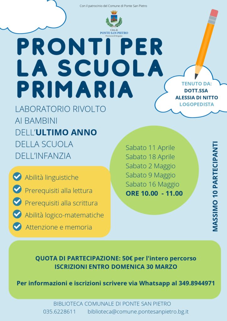 Laboratorio rivolto ai bambini dell’ultimo anno della scuola d’infanzia. I sabati 11 e 18 aprile e 2,9 e 16 maggio, dalle 10:00 alle 11:00. Per informazioni e iscrizioni scrivere su whatsapp al numero 3498944971