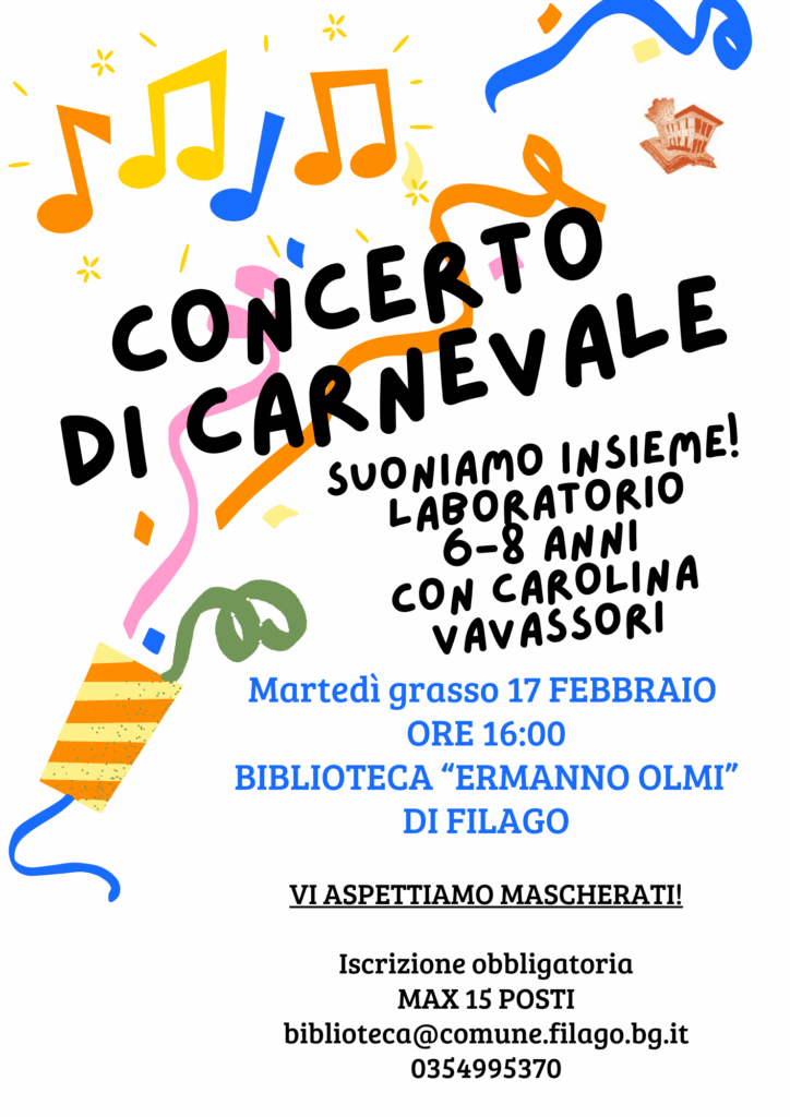 La Biblioteca Comunale “Ermanno Olmi” di Filago invita bambine e bambini dai 3 ai 6 anni a partecipare a “Volare, oh oh…”, un pomeriggio dedicato alla fantasia e alla scoperta.L’iniziativa prevede letture animate, seguite da una merenda e da un laboratorio creativo, pensati per stimolare l’immaginazione e il piacere della lettura nei più piccoli.