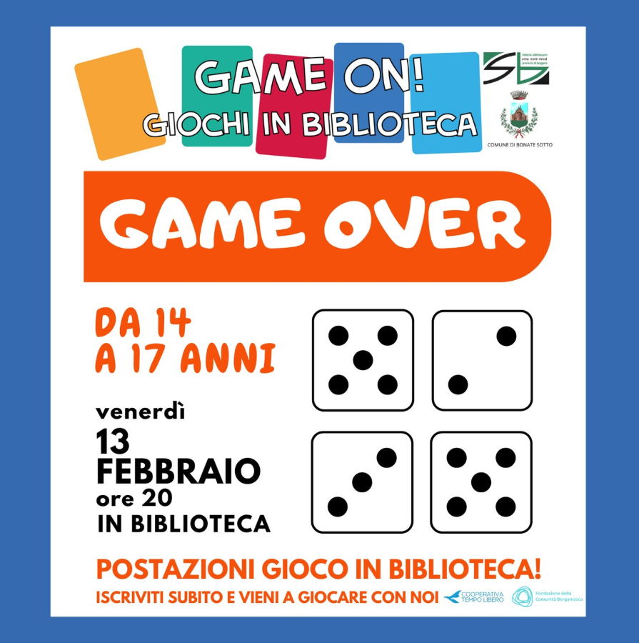 Hai tra i 14 e i 17 anni? Allora questo post è per te GAME OVER – Giochi in Biblioteca Venerdì 13 febbraio Dalle ore 20 alle 22 in Biblioteca