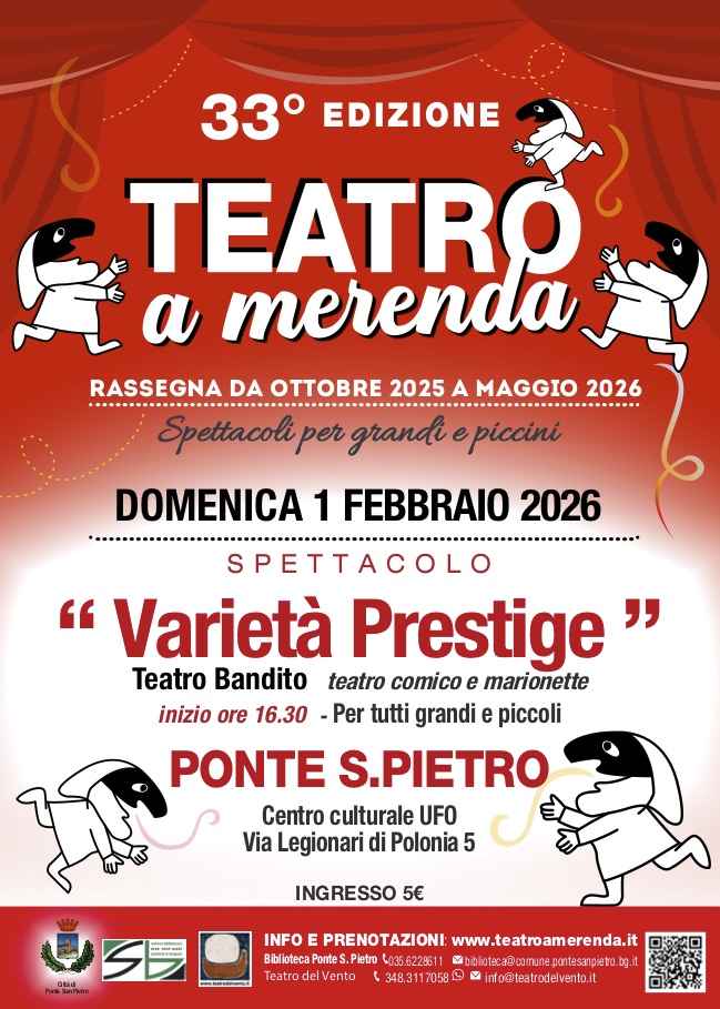 Torna la rassegna “Teatro a merenda, spettacoli per grandi e piccini” a Ponte san Pietro! Torna la proposta di Teatro Bandito che proporrà a Ponte San Pietro il suo spettacolo “Varietà prestige” con le splendide marionette di Jan Ruzicka. Lo spettacolo vuole essere un omaggio all’Avanspettacolo e al mondo Cabaret degli anni Trenta ed è […]
