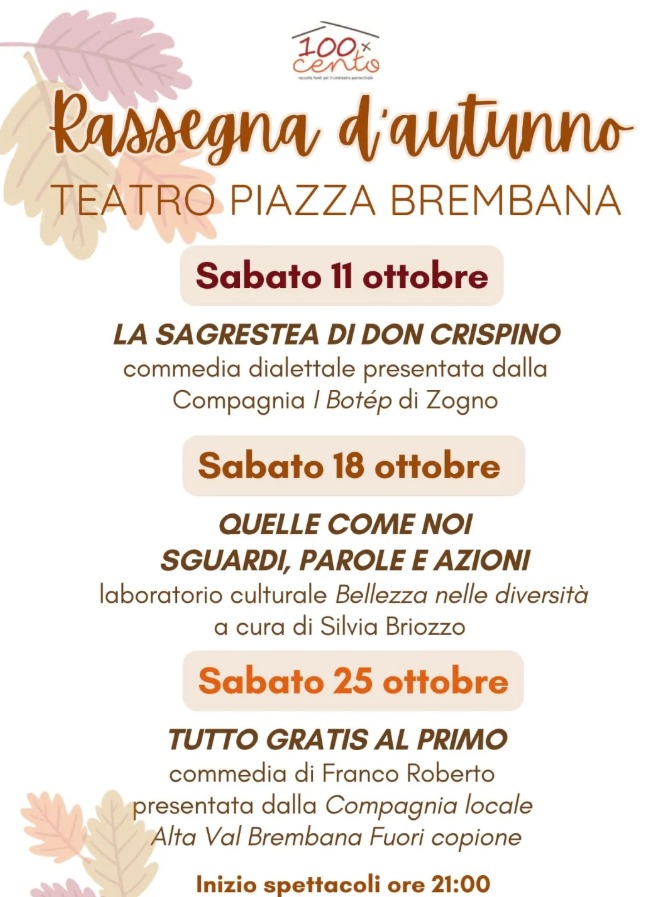 Tre incontri teatrali presso Piazza Brembana. Inizio spettacoli ore 21:00.