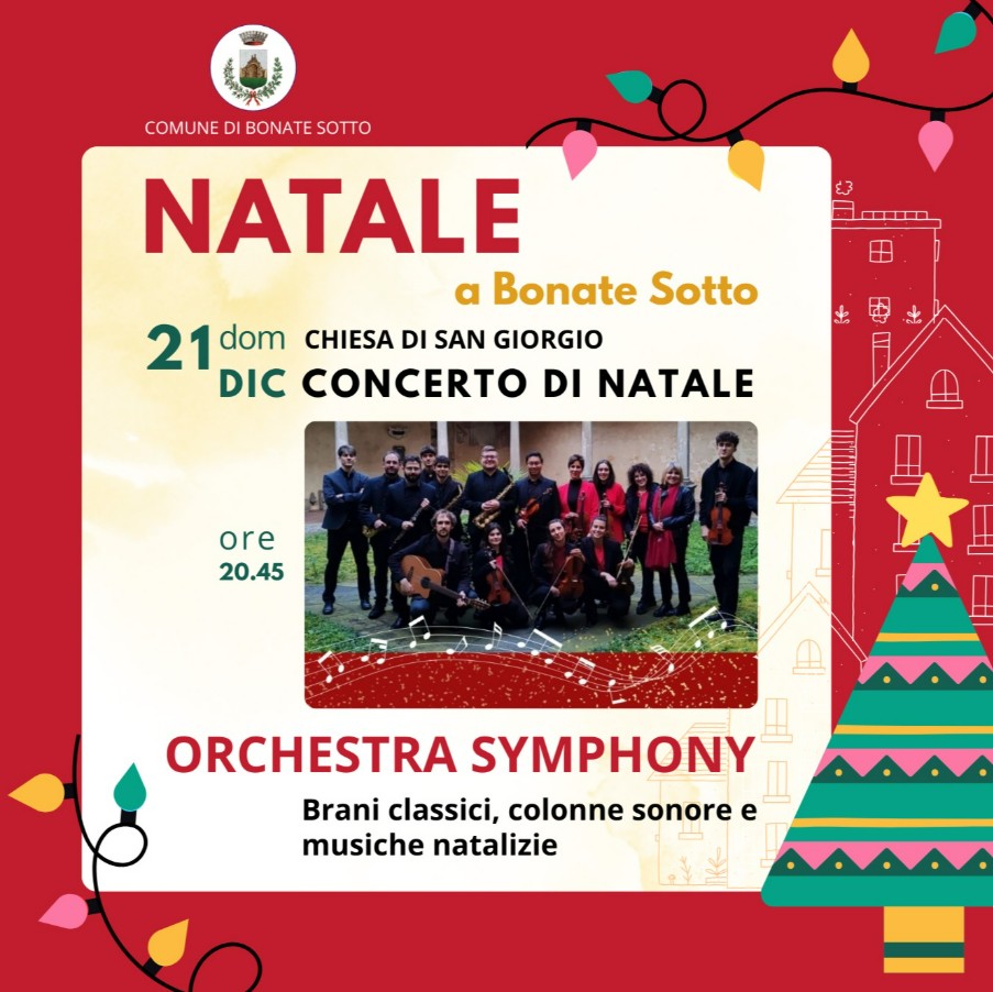 Natale a Bonate Sotto Prossimo appuntamento in attesa del Natale: Domenica 21 dicembre alle ore 20.45 CONCERTO DI NATALE con l’Orchestra Symphony Chiesa di San Giorgio Dalle melodie immortali del repertorio classico alle colonne sonore più amate, fino ai canti natalizi della tradizione. Un programma ricco e suggestivo che unisce emozione, atmosfera e spirito delle […]