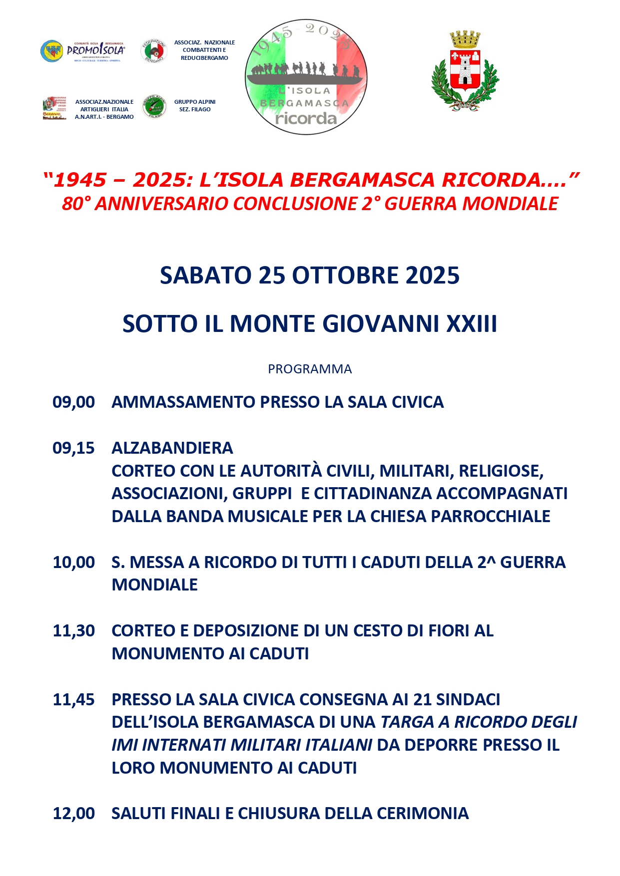 “1945 – 2025: L’ Isola Bergamasca ricorda …”