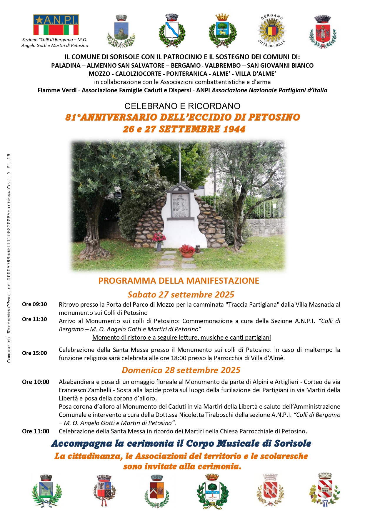In occasione dell’ 81esimo Anniversario dell’Eccidio momenti di celebrazione con letture, musiche e canti dei partigiani.
