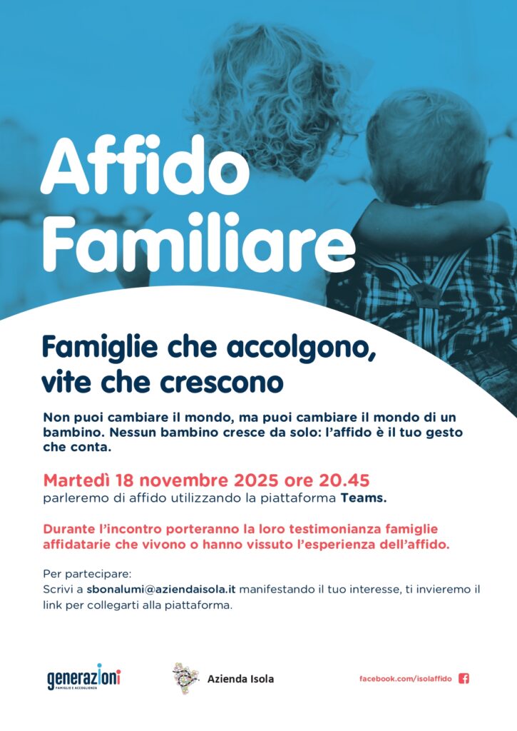 Martedì 18 novembre 2025 ore 20.45 parleremo di affido utilizzando la piattaforma Teams.