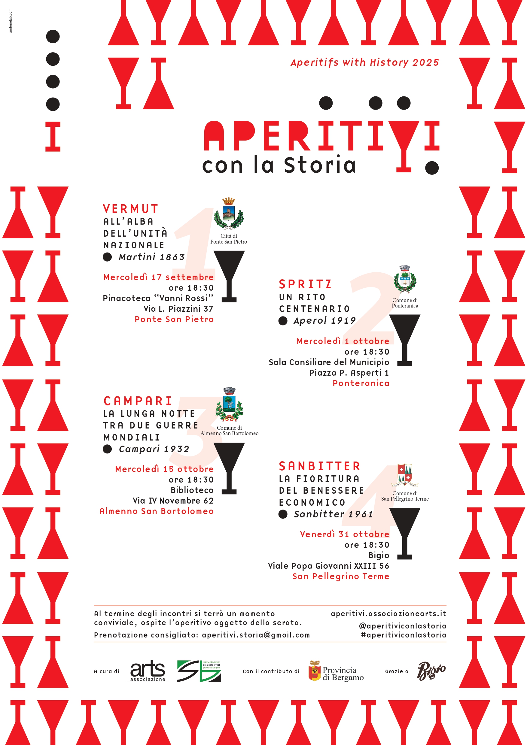 Al termine degli incontri si terrà un momento conviviale, ospite l’aperitivo oggetto della serata.