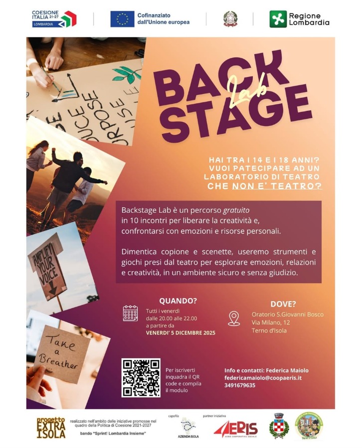 Si alza il sipario su Backstage Lab! Non è un corso di teatro, non si imparano copioni a memoria, non si giudicherà la performance: il vero obiettivo è esplorare le proprie emozioni, le relazioni, le proprie risorse. Il tutto in un ambiente aperto e accogliente.