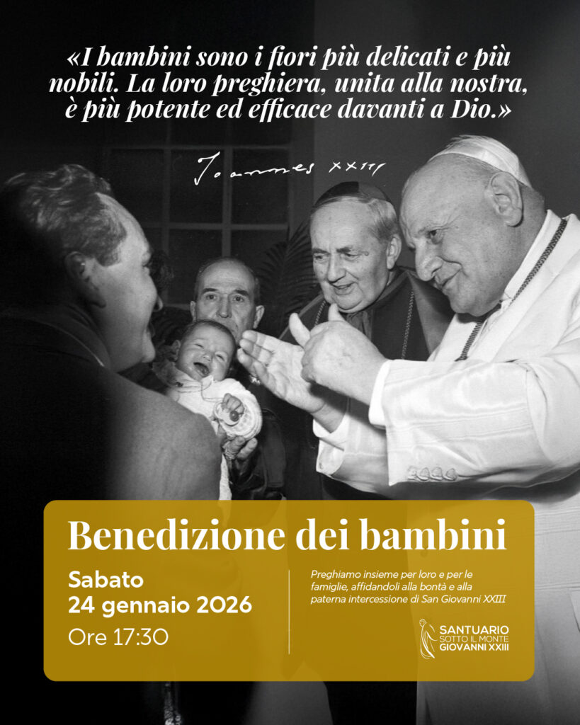 Sabato 24 gennaio 2026, alle 17.30, presso il Santuario di Sotto il Monte Giovanni XXIII, si terrà la cerimonia religiosa dedicata alla benedizione dei bambini.