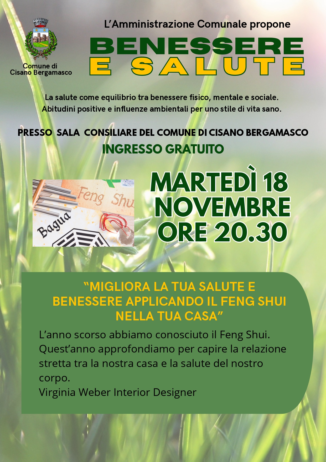 Martedì 18 novembre ore 20,30 presso la sala consiliare del Comune di Cisano Bergamasco