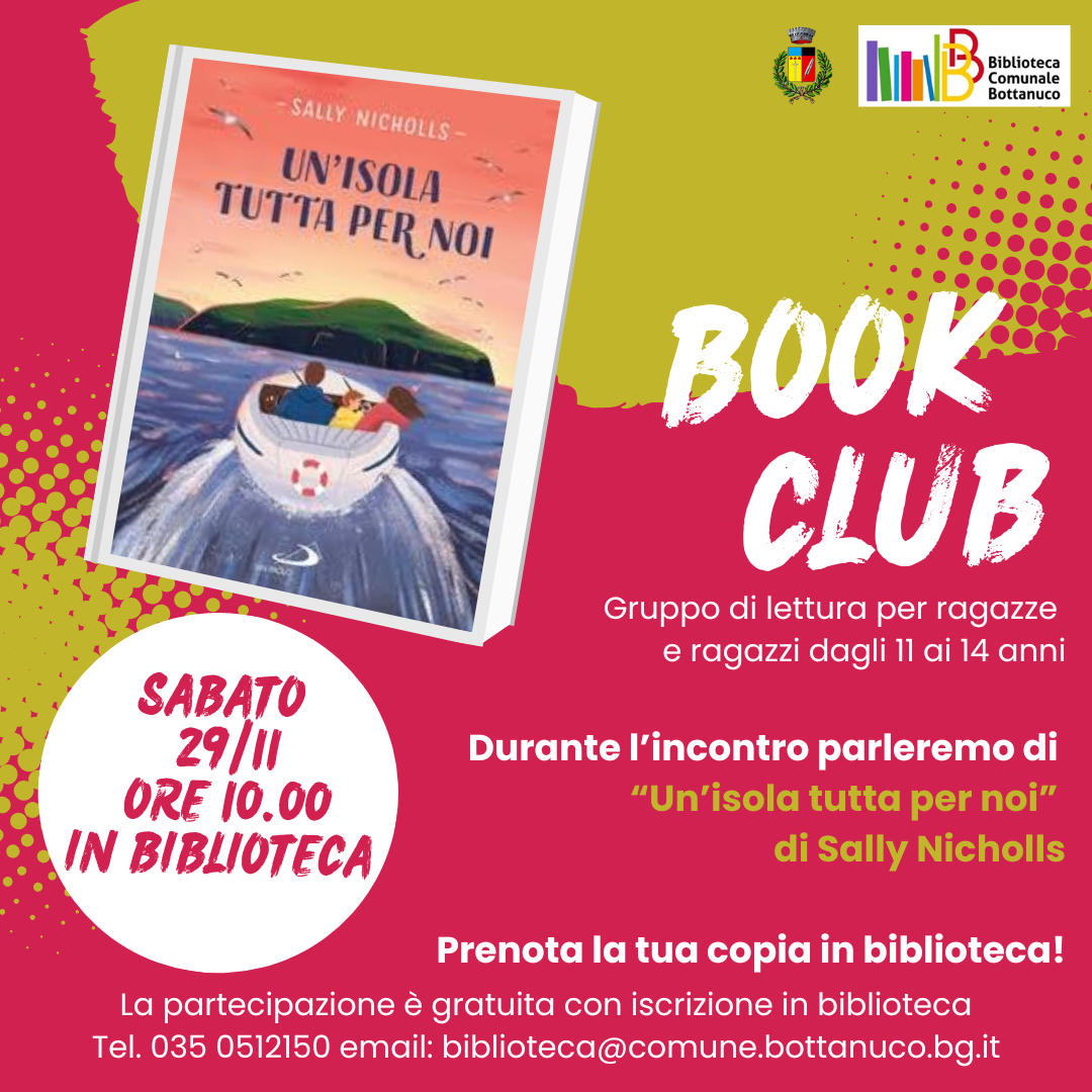 Ti aspettiamo sabato 29/11 alle ore 10.00 in biblioteca per parlare di "Un'isola tutta per noi" di Sally Nicholls.