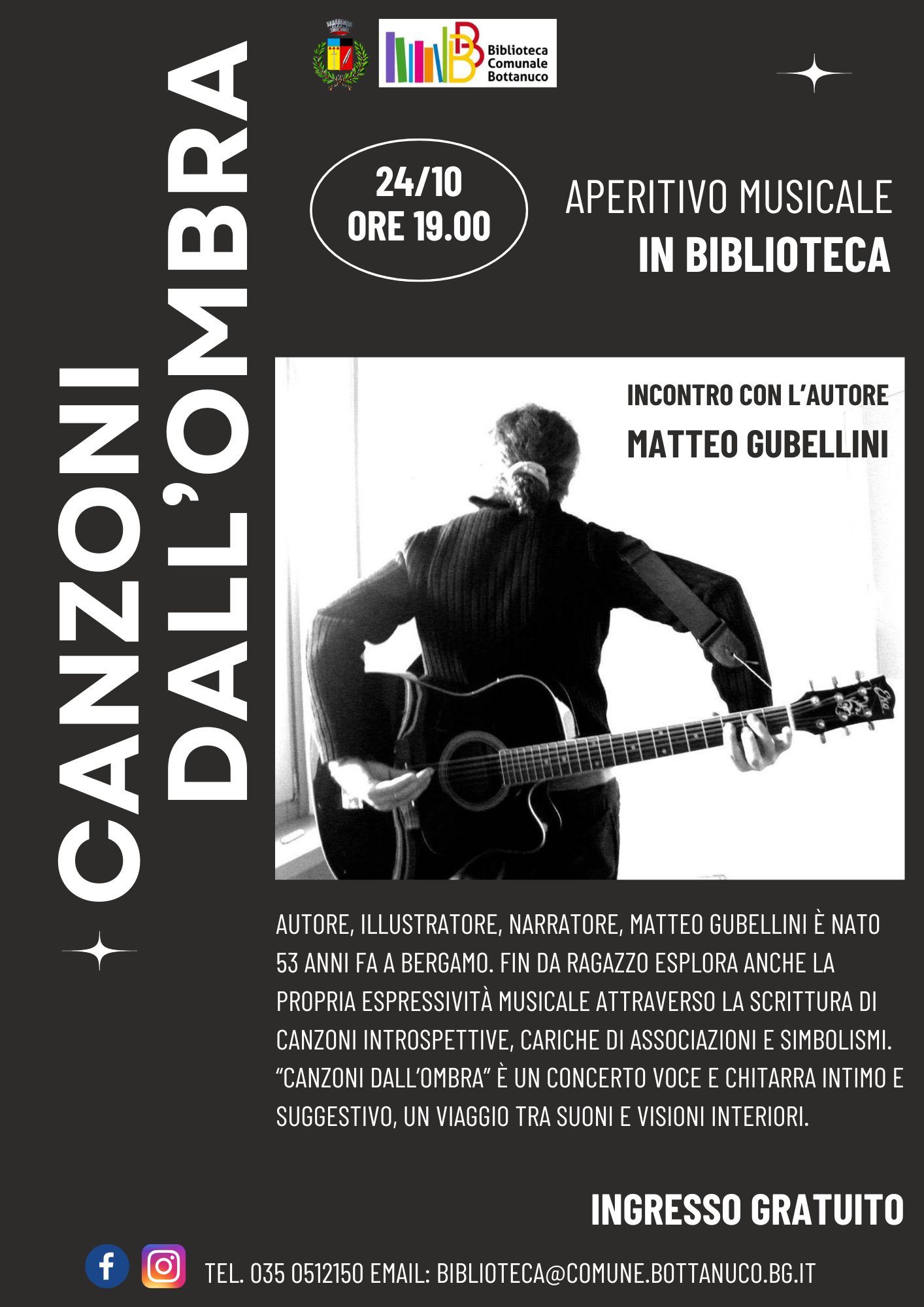 "Canzoni dall'ombra" è un concerto voce e chitarra intimo e suggestivo, un viaggio tra suoni e visioni interiori.