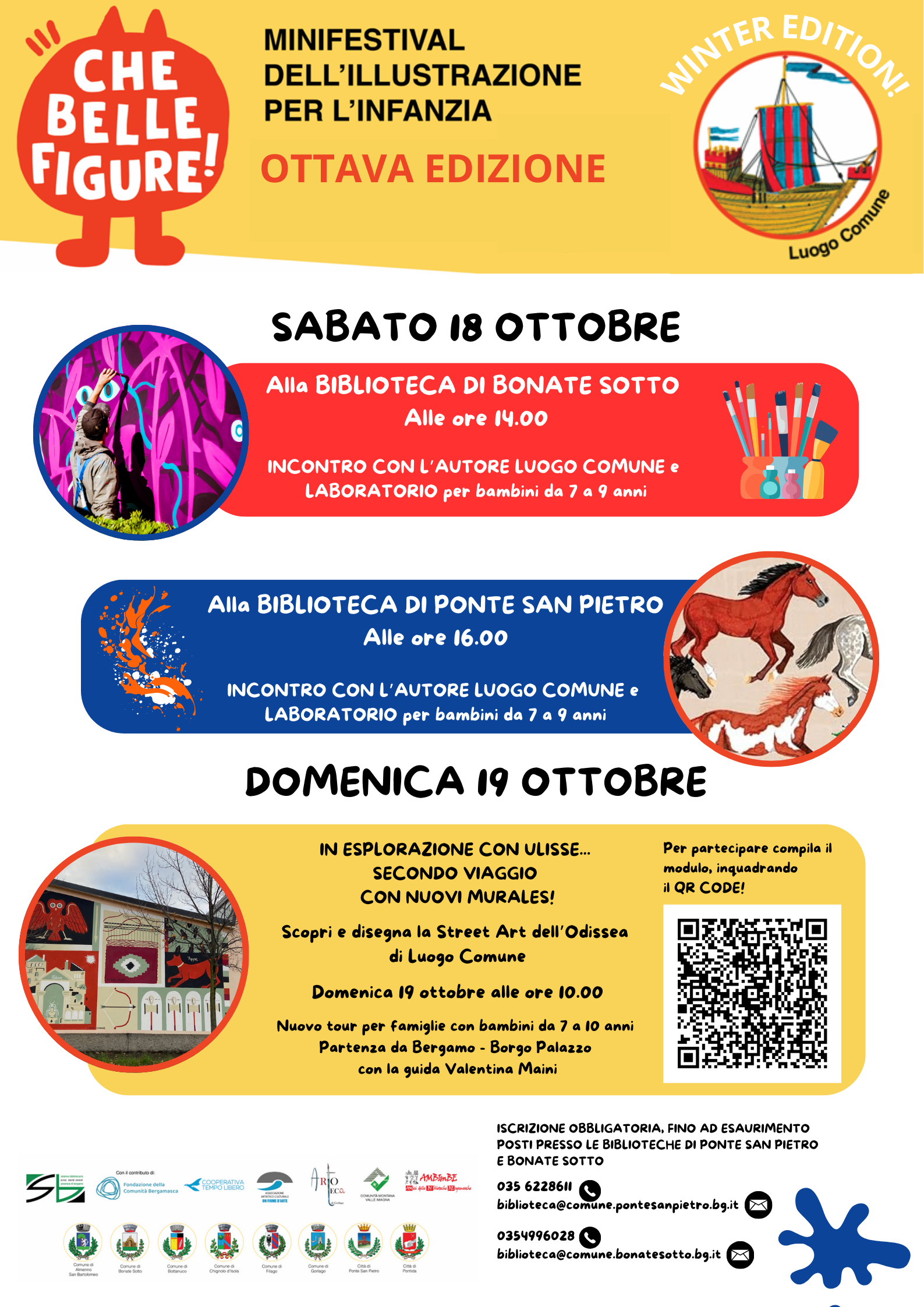 Iscrizioni per gli eventi del 18 ottobre presso le rispettive biblioteche; compilare il modulo inquadrando il QR code allegato per iscriversi alla visita guidata del 19 ottobre.