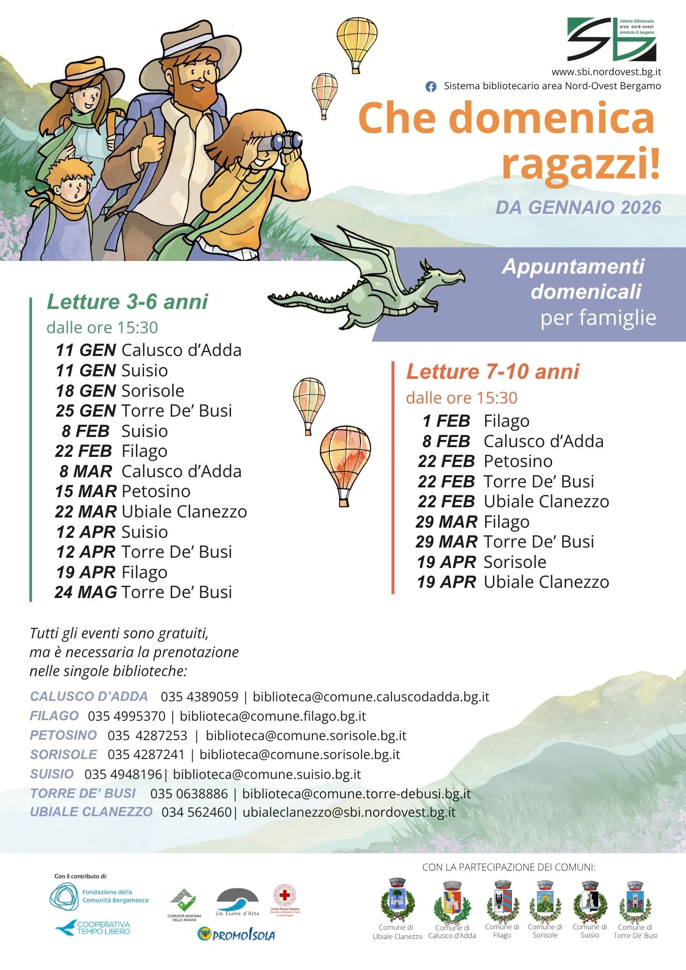 Letture 3-6 anni: 25 gennaio, 10 maggio e 24 maggio.