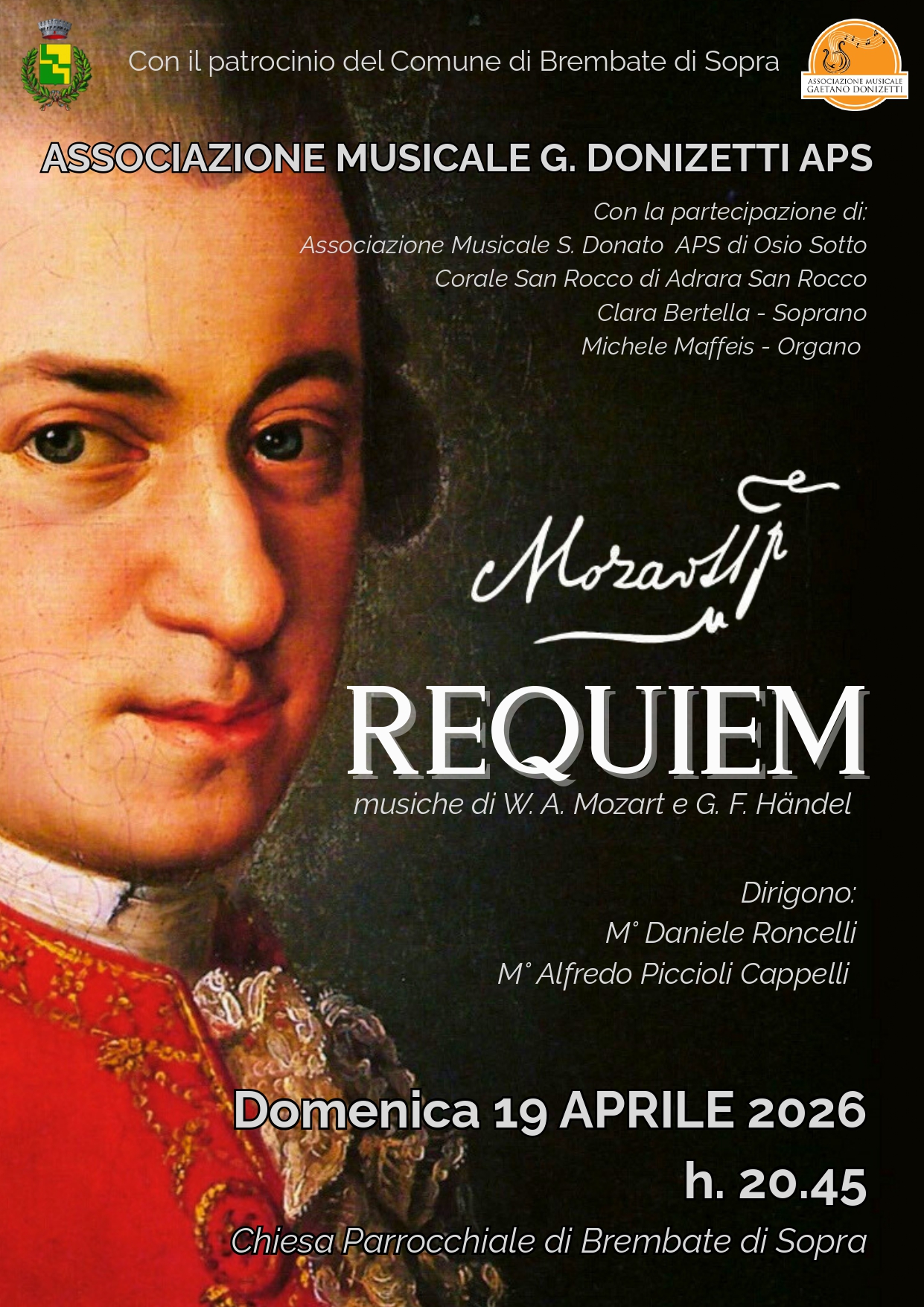 organizzano per domenica 19 aprile 2026 alle ore 20.45 presso la Chiesa Parrocchiale di Brembate di Sopra il concerto Requiem di Mozart.