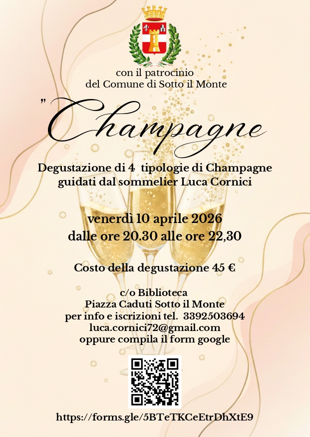 Degustazione di 4 tipologie di Champagne, guidati dal sommelier Luca Cornici.