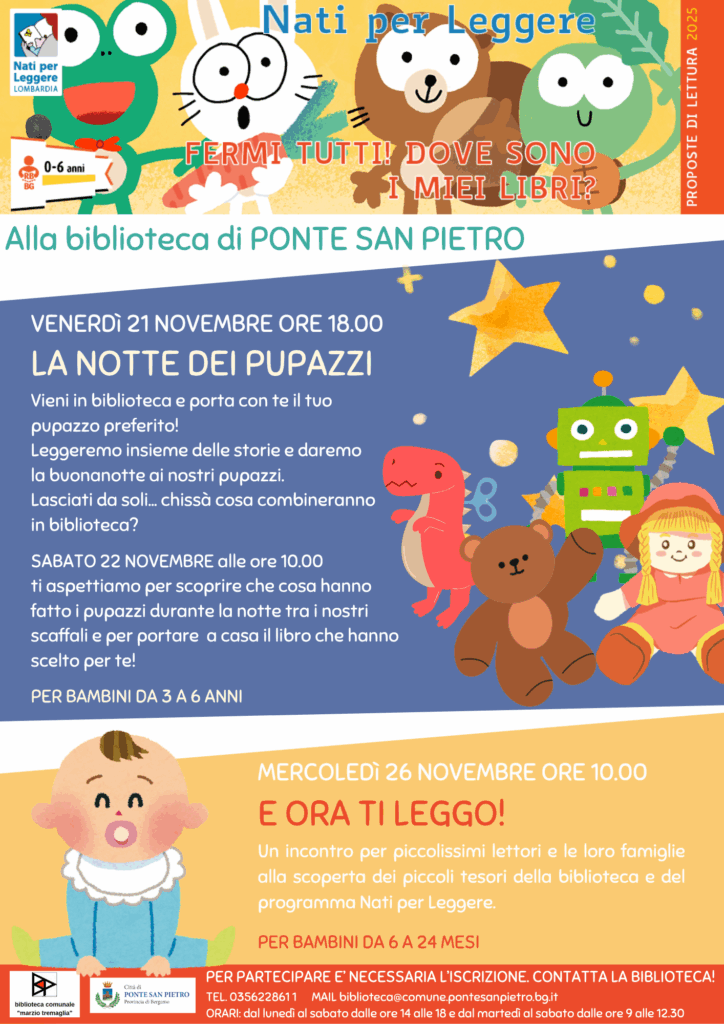 Un incontro per piccolissimi lettori e le loro famiglie alla scoperta dei piccoli tesori della biblioteca e del programma Nati per Leggere.