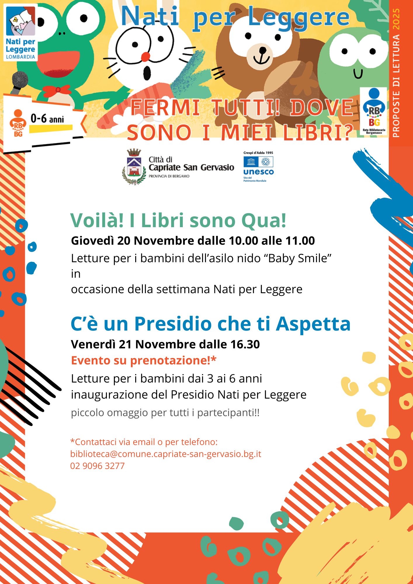 saremo al nido "Baby Smile" della Scuola dell'Infanzia Adele Pezzi con Voilà! I libri sono qua! per scoprire in anteprima i libri della bibliografia Nati per Leggere 2025.