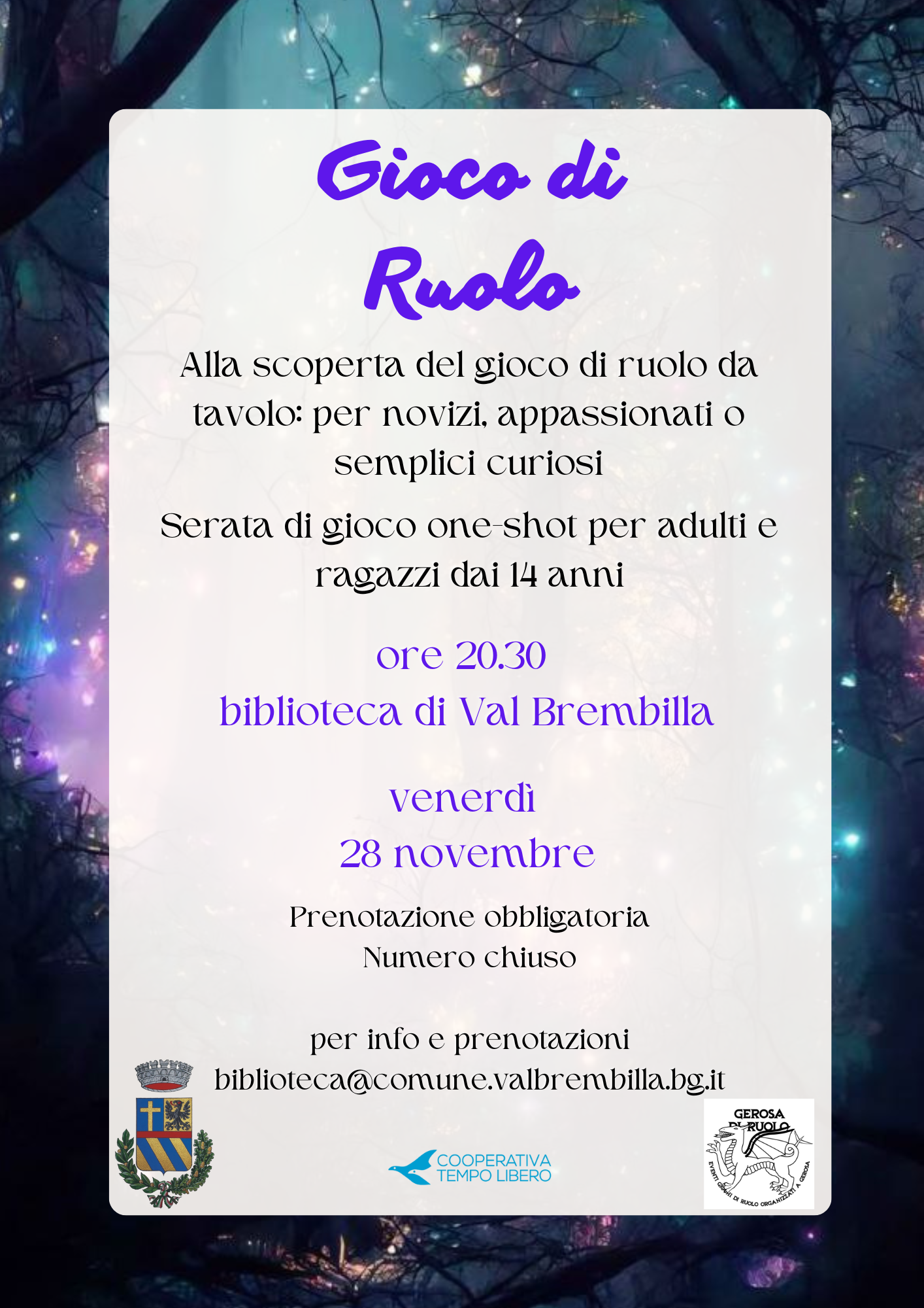 Serata di gioco one-shot per adulti e ragazzi dai 14 anni.