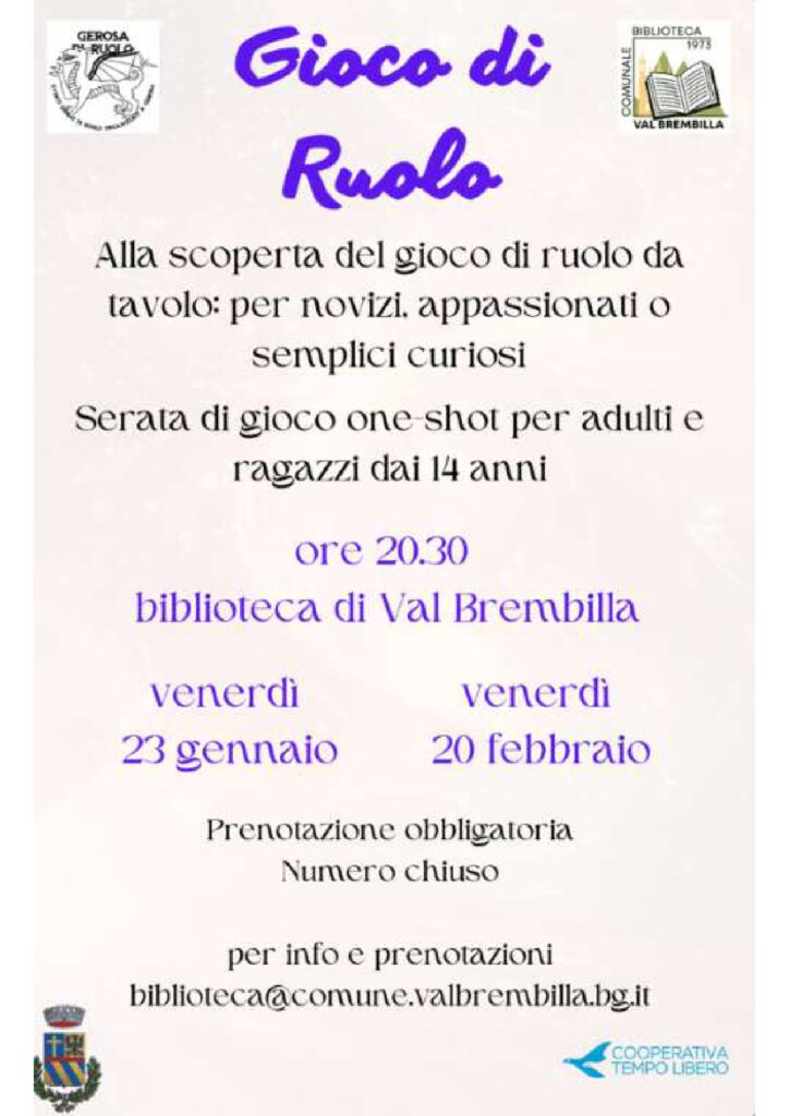 Per info e prenotazioni biblioteca@comune.valbrembilla.bg.it