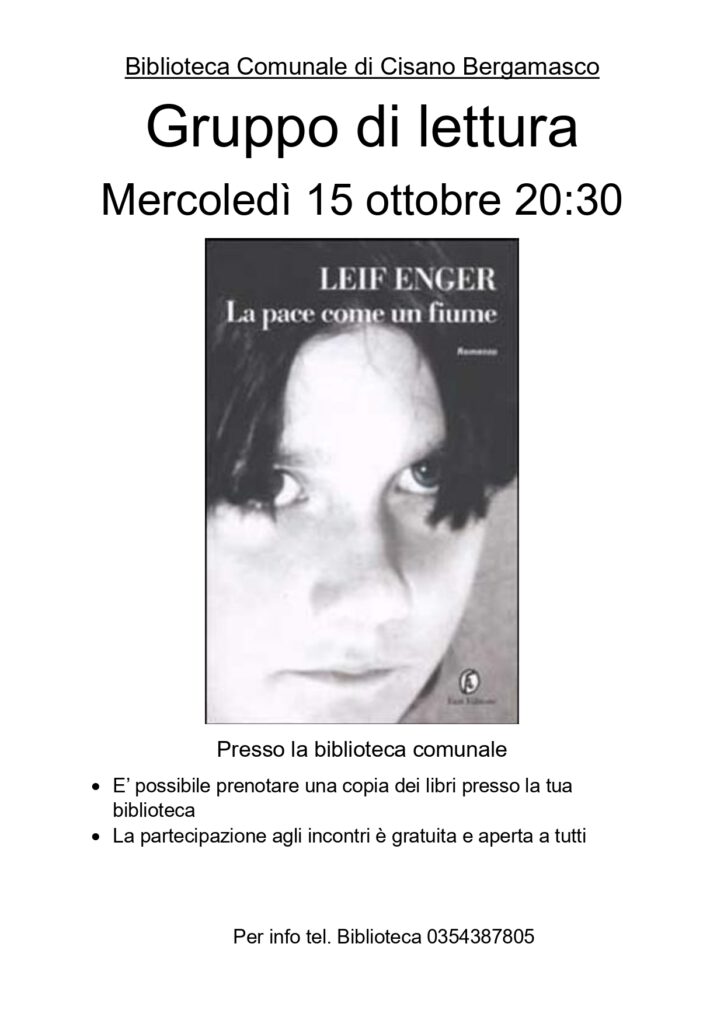Mercoledì 15 ottobre presso la biblioteca comunale alle ore 20.30 incontro gruppo di lettura