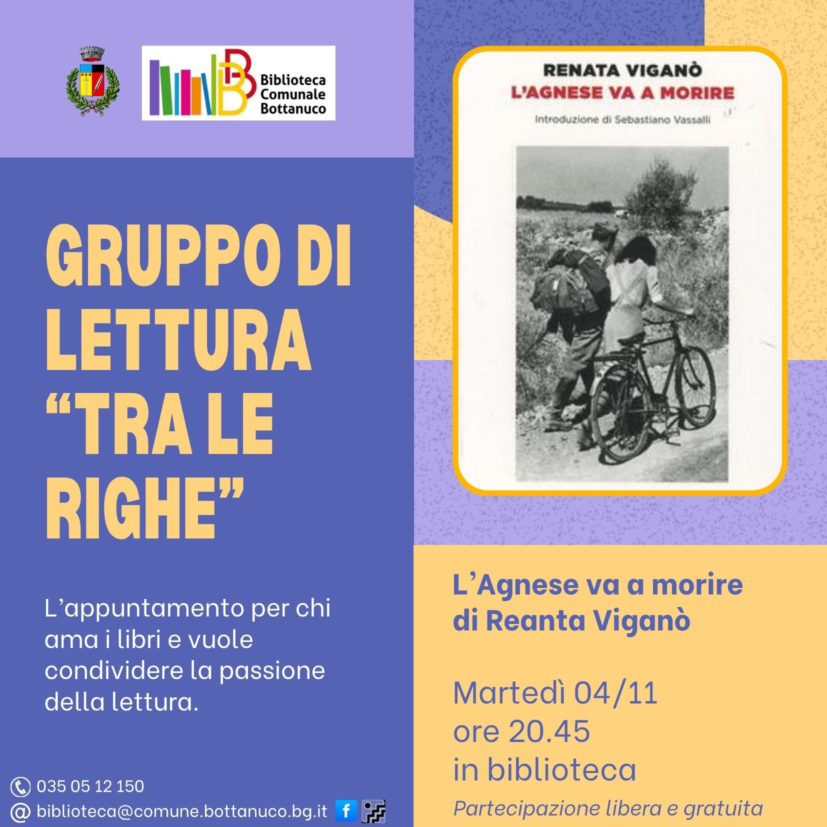 Il libro di cui si discuterà è "L'Agnese va a morire" di Renata Viganò.