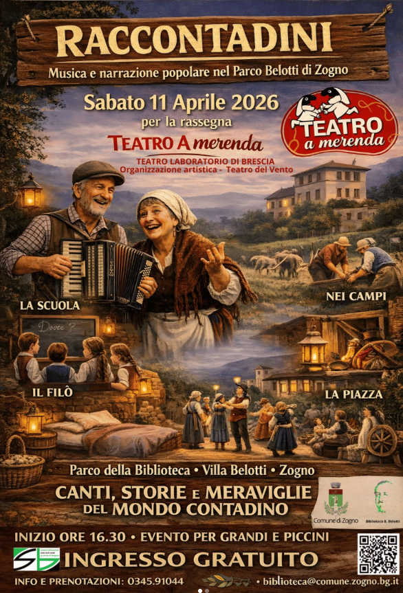 Il Comune di Zogno – Assessorato alla Cultura vi invita a “Raccontadini”, spettacolo della rassegna Teatro a Merenda