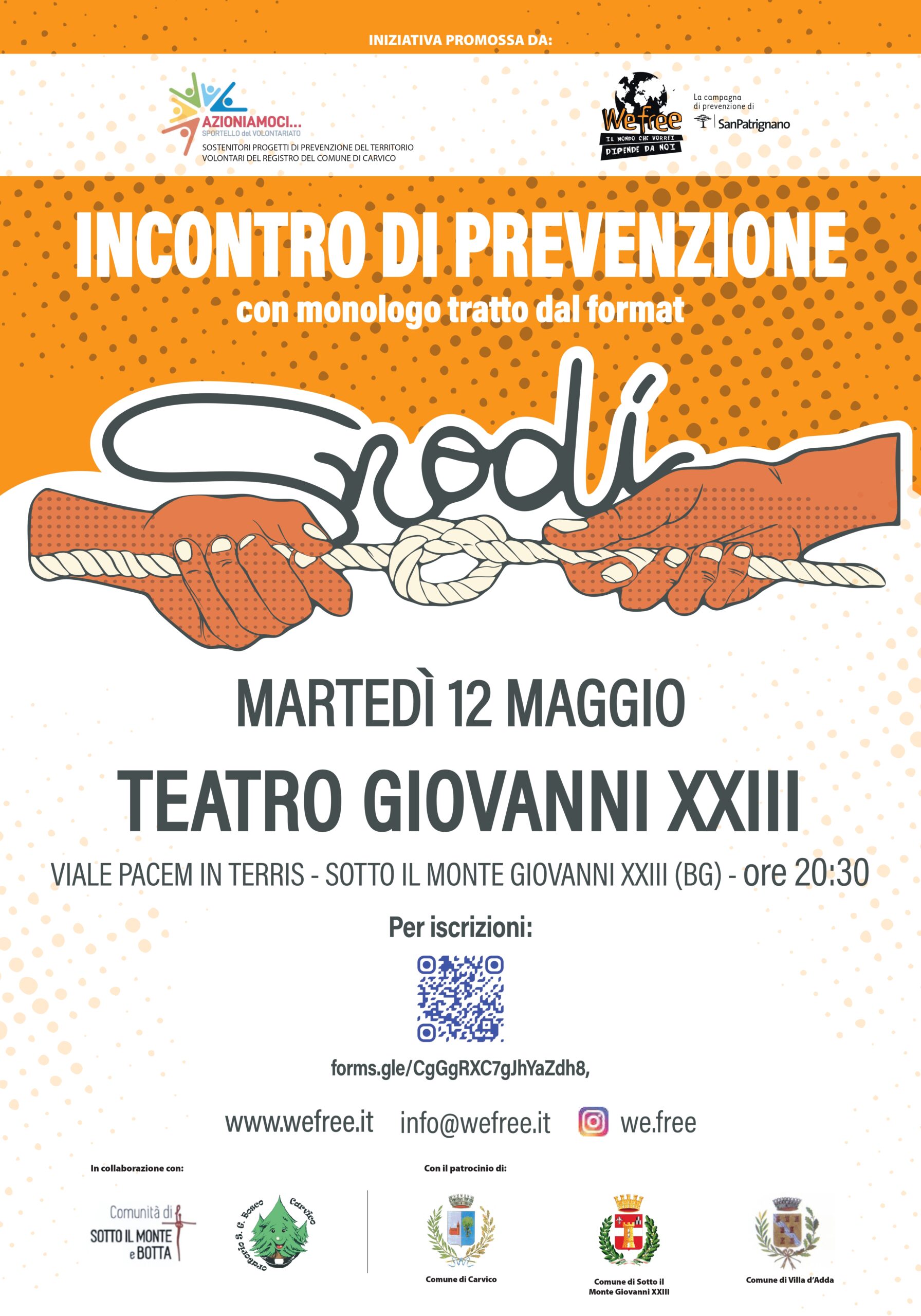 Un incontro dedicato alla prevenzione e alla sensibilizzazione, rivolto a tutta la cittadinanza. L’evento propone un monologo tratto dal format “Nodi”, pensato per stimolare riflessione e consapevolezza su tematiche sociali di grande attualità.