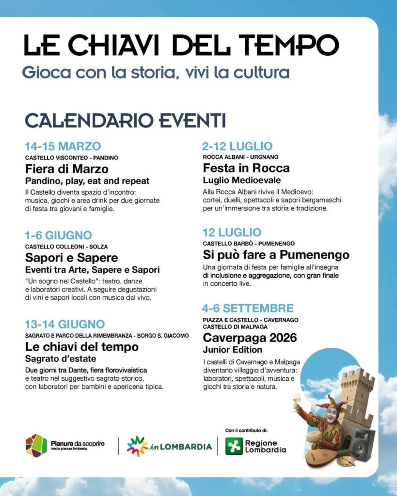 La prima settimana di giugno, da lunedì 1 a sabato 6, presso il castello di Solza ci sarà l'iniziativa culturale 'Le chiavi del tempo'.