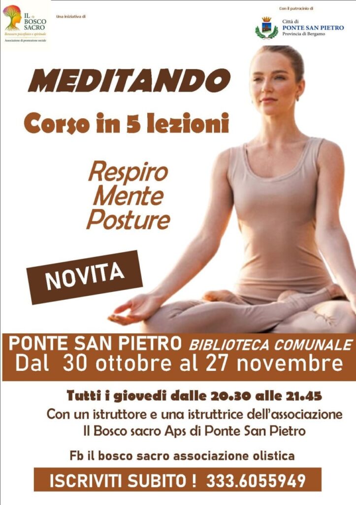 Per la prima volta a Ponte San Pietro si apre uno spazio speciale dedicato alla meditazione: Meditando offrirà a tutti la possibilità di ritagliarsi un momento di pace e silenzio interiore. Per  cinque incontri serali, a partire da giovedì 30 ottobre 2025, nella Sala Milani della Biblioteca, i partecipanti potranno imparare esercizi semplici ma efficaci.
