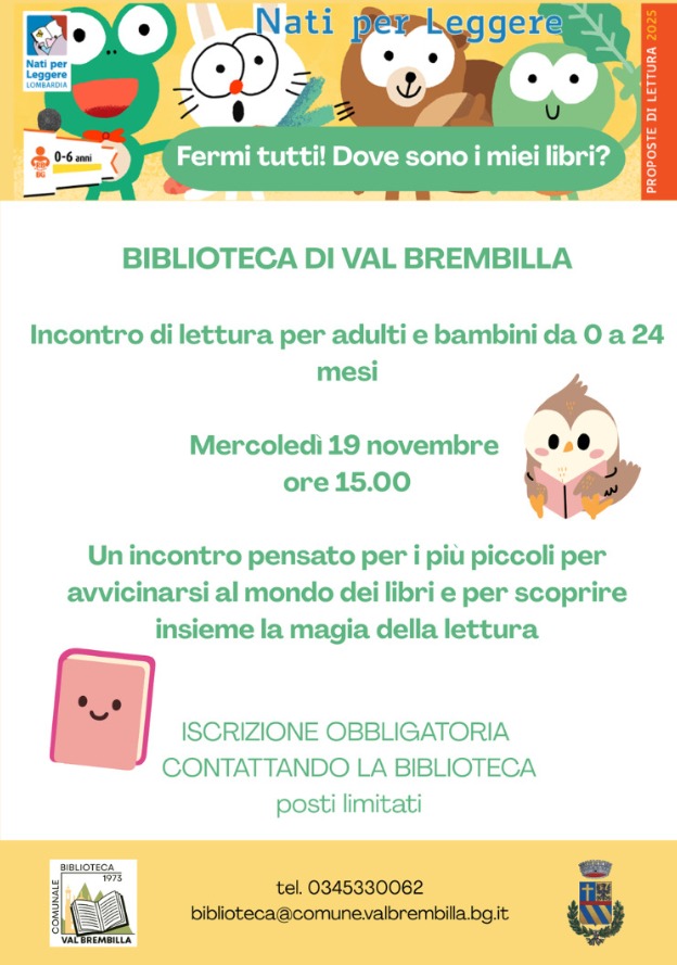 Ingresso libero e prenotazione OBBLIGATORIA: biblioteca@comune.valbrembilla.bg.it o 0345/330062