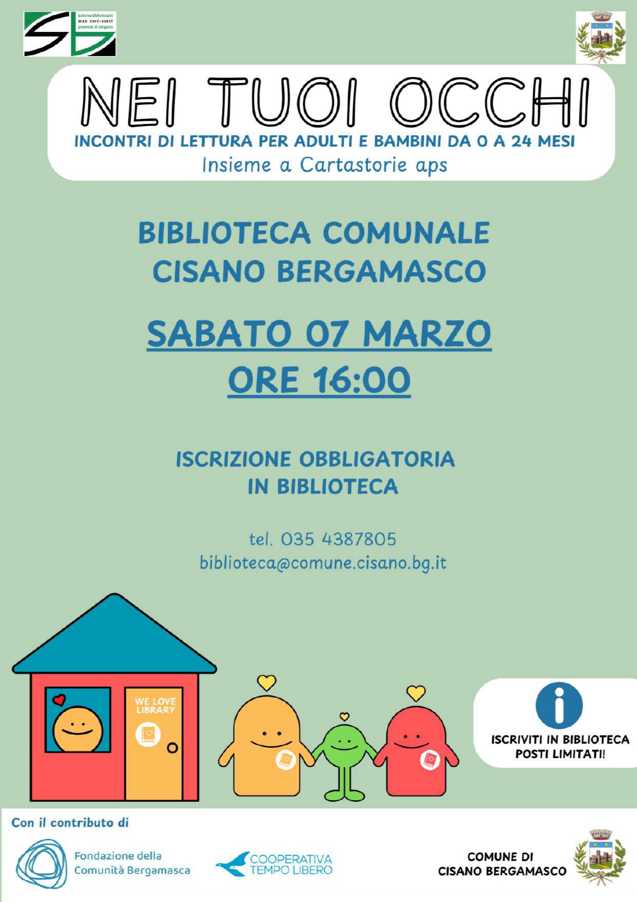 Sabato 7 marzo alle ore 16.00 presso la Biblioteca di Cisano Bergamasco. Bambini da 0 a 24 mesi