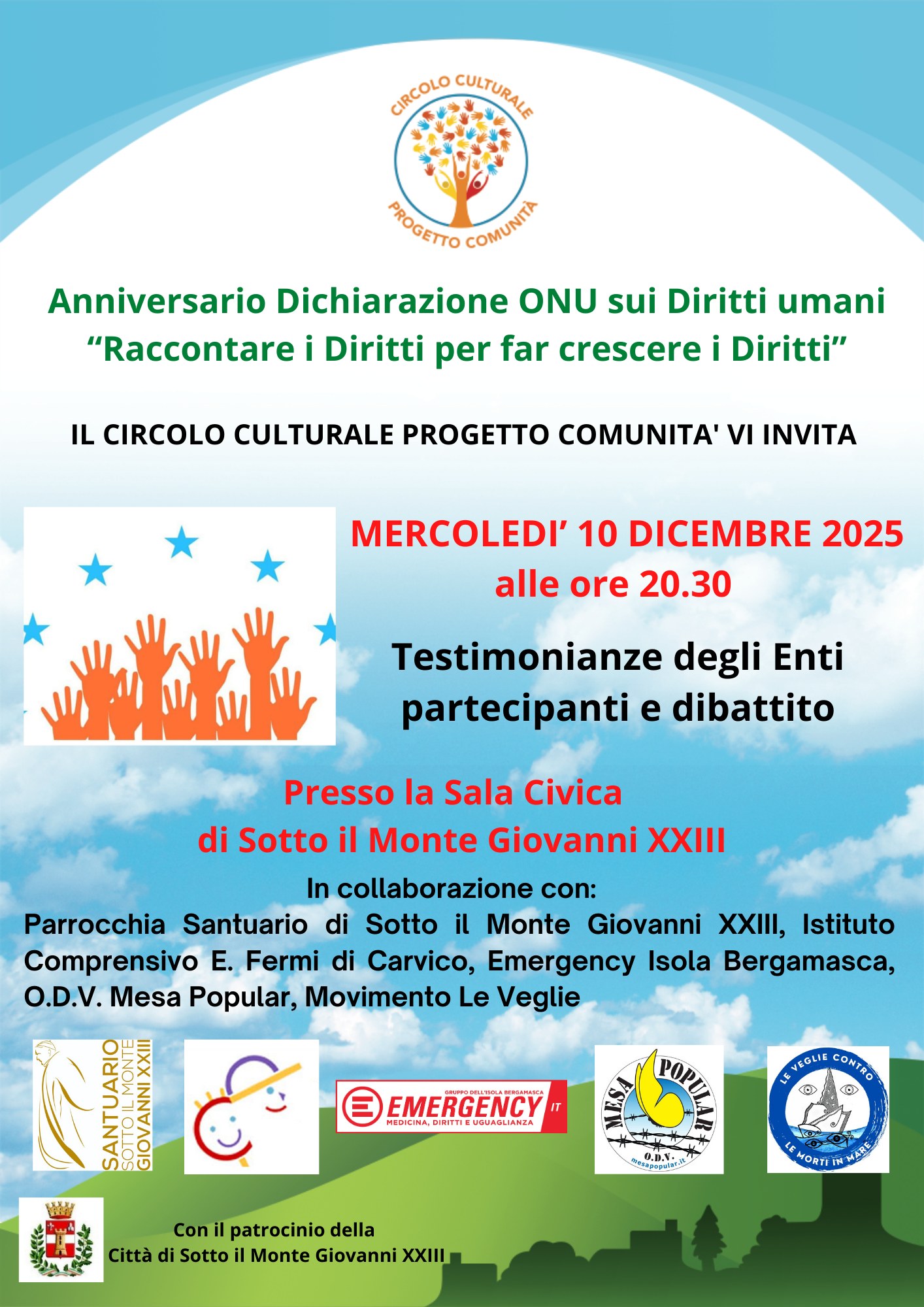 Il Circolo Culturale Progetto Comunità, con il patrocinio del Comune di Sotto il Monte, organizza