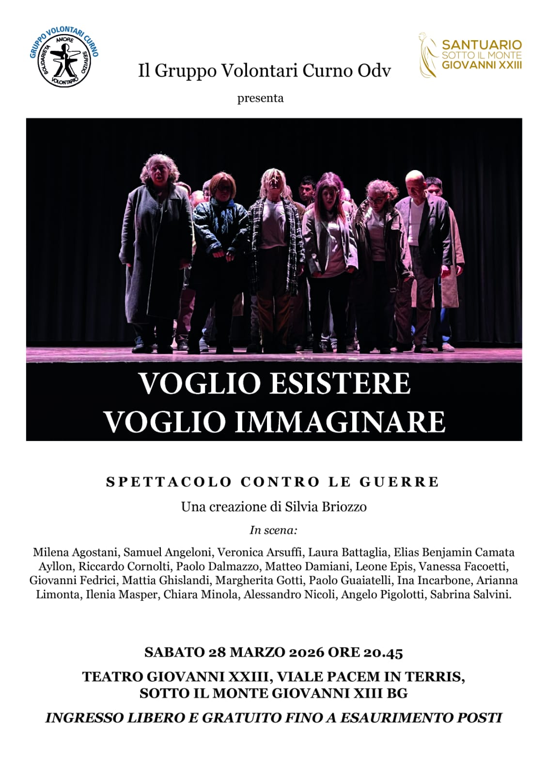 Spettacolo contro le guerre: “Voglio esistere, voglio immaginare”