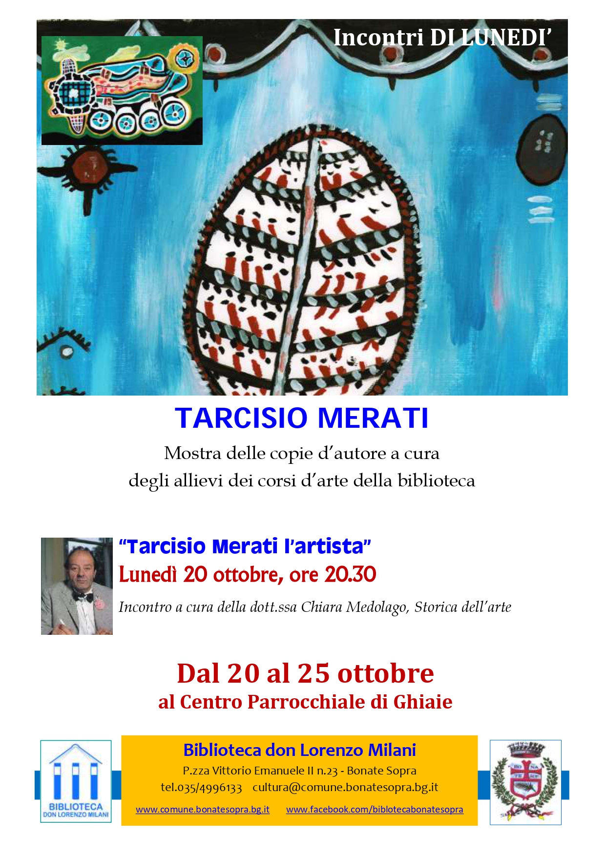 Dal 20 al 25 ottobre il Centro Parrocchiale di Ghiaie ospita la mostra delle copie d'autore delle opere di Tarcisio Merati a cura degli allievi dei corsi d'arte della biblioteca.