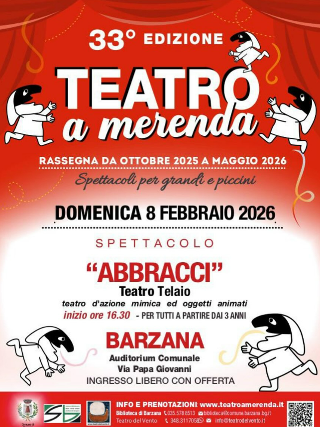 8 febbraio 2025 alle 16:30 presso l’Auditorium comunale si terrà uno spettacolo dal nome “Abbracci”!