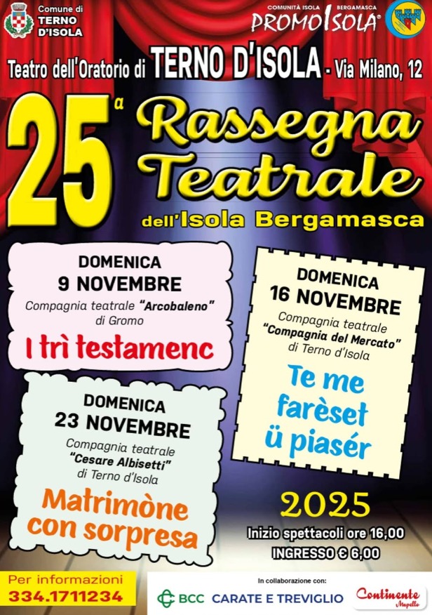 Quest’anno, la tradizionale Rassegna Teatrale dialettale dell’Isola triplica: saranno tre, gli spettacoli in programma del teatro dell’oratorio di Terno d’Isola!