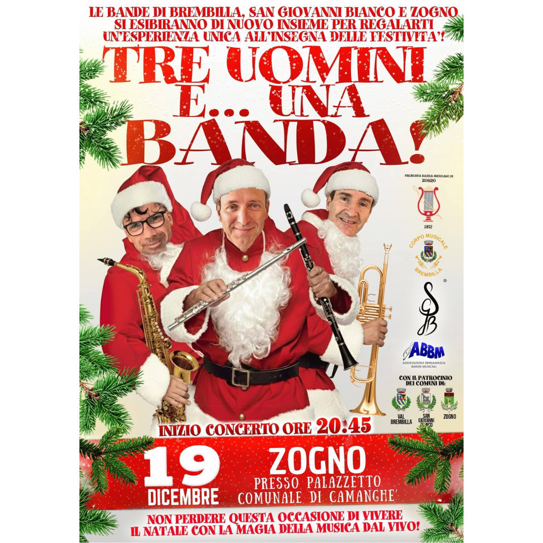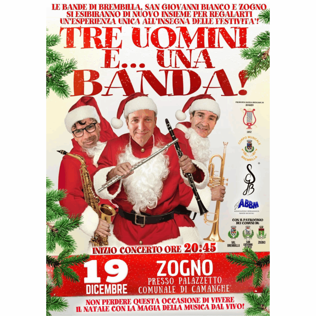 Le bande di Brembilla, San Giovanni Bianco e Zogno si esibiranno di nuovo insieme per regalarti un'esperienza unica all'insegna delle festività!
