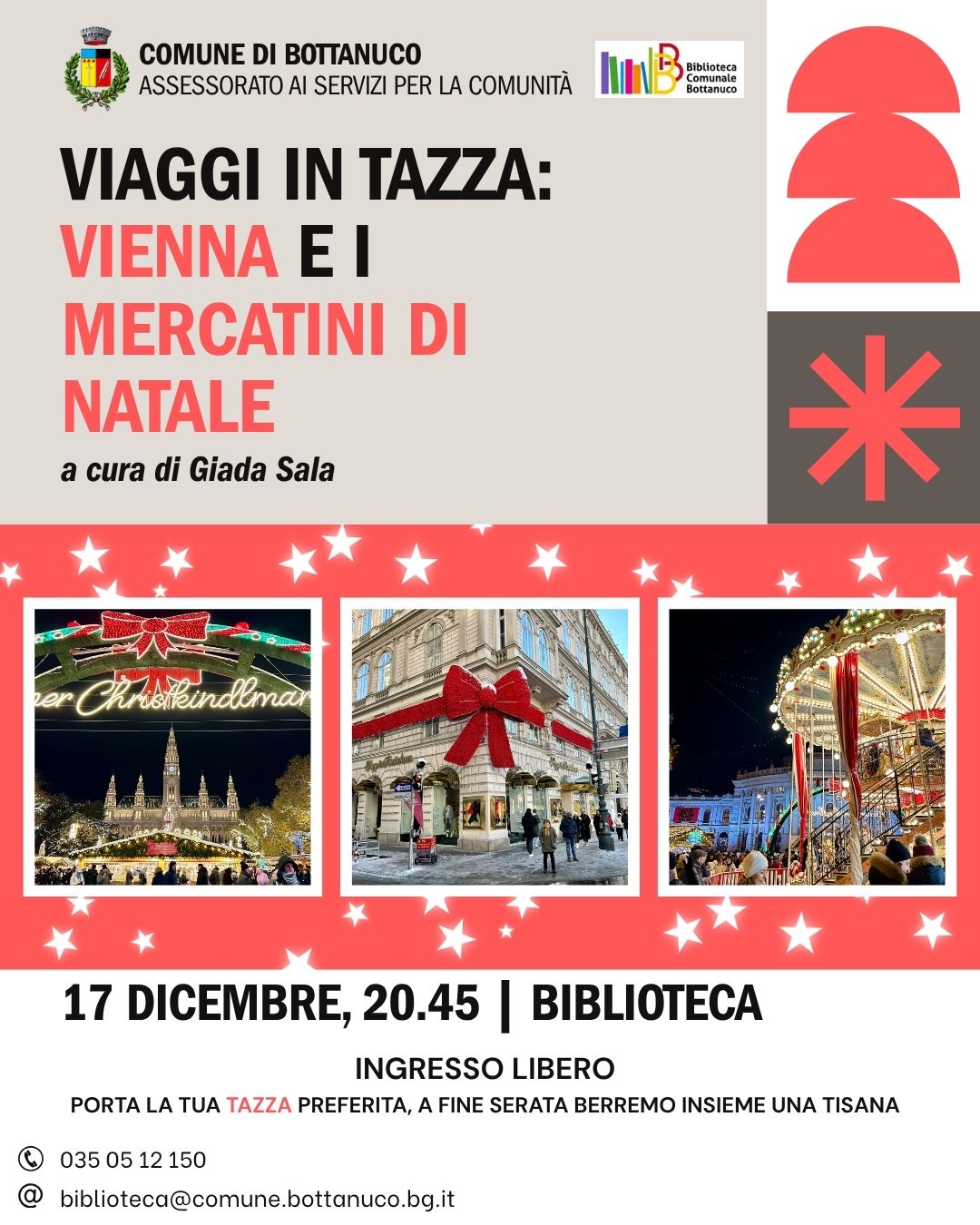 Vi aspettiamo mercoledì 17/12 per un itinenrario natalizio a cura di Giada Sala: Vienna e i mercatini di Natale.