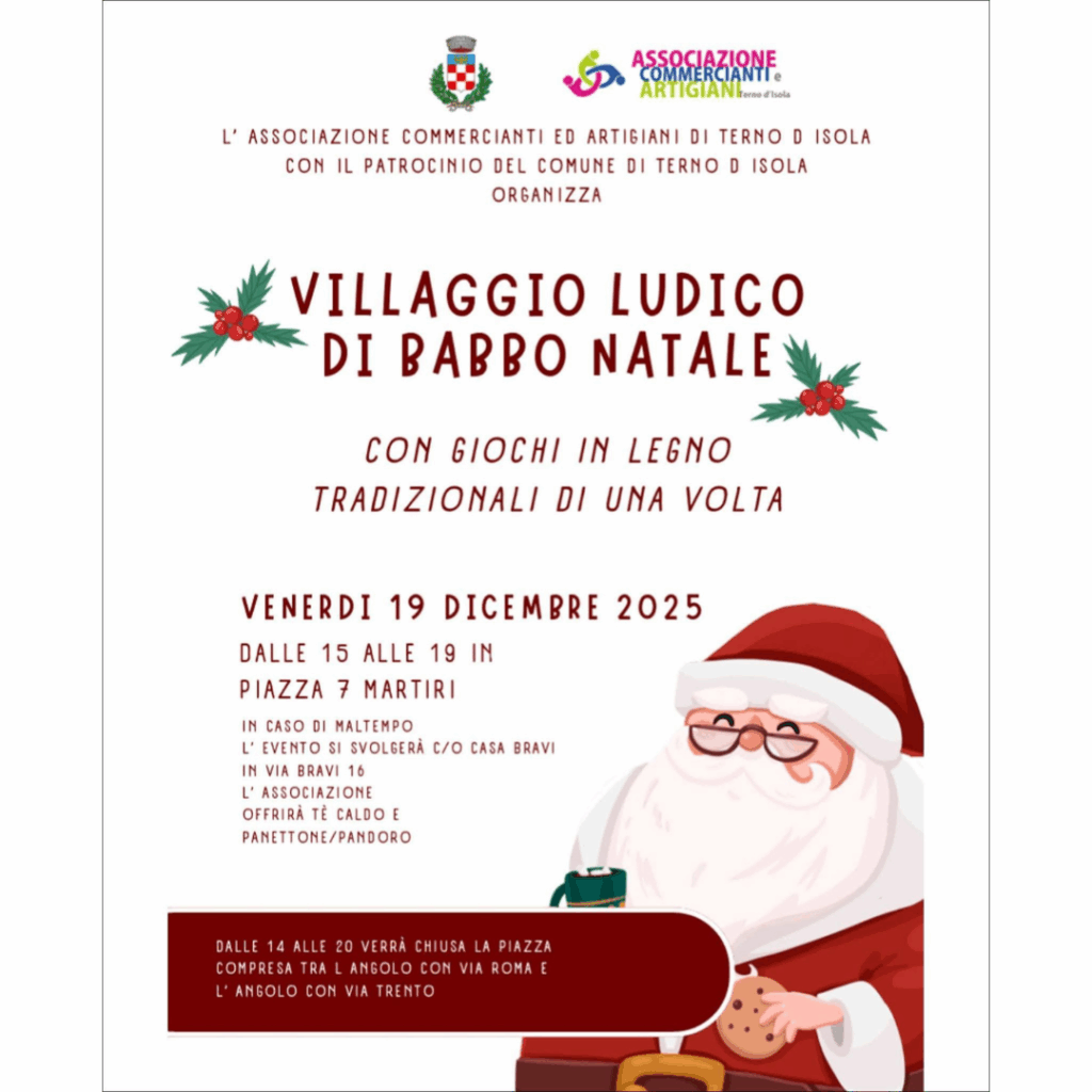 Villaggio di Babbo Natale con giochi tradizionali di una volta, dalle 15 alle 19.