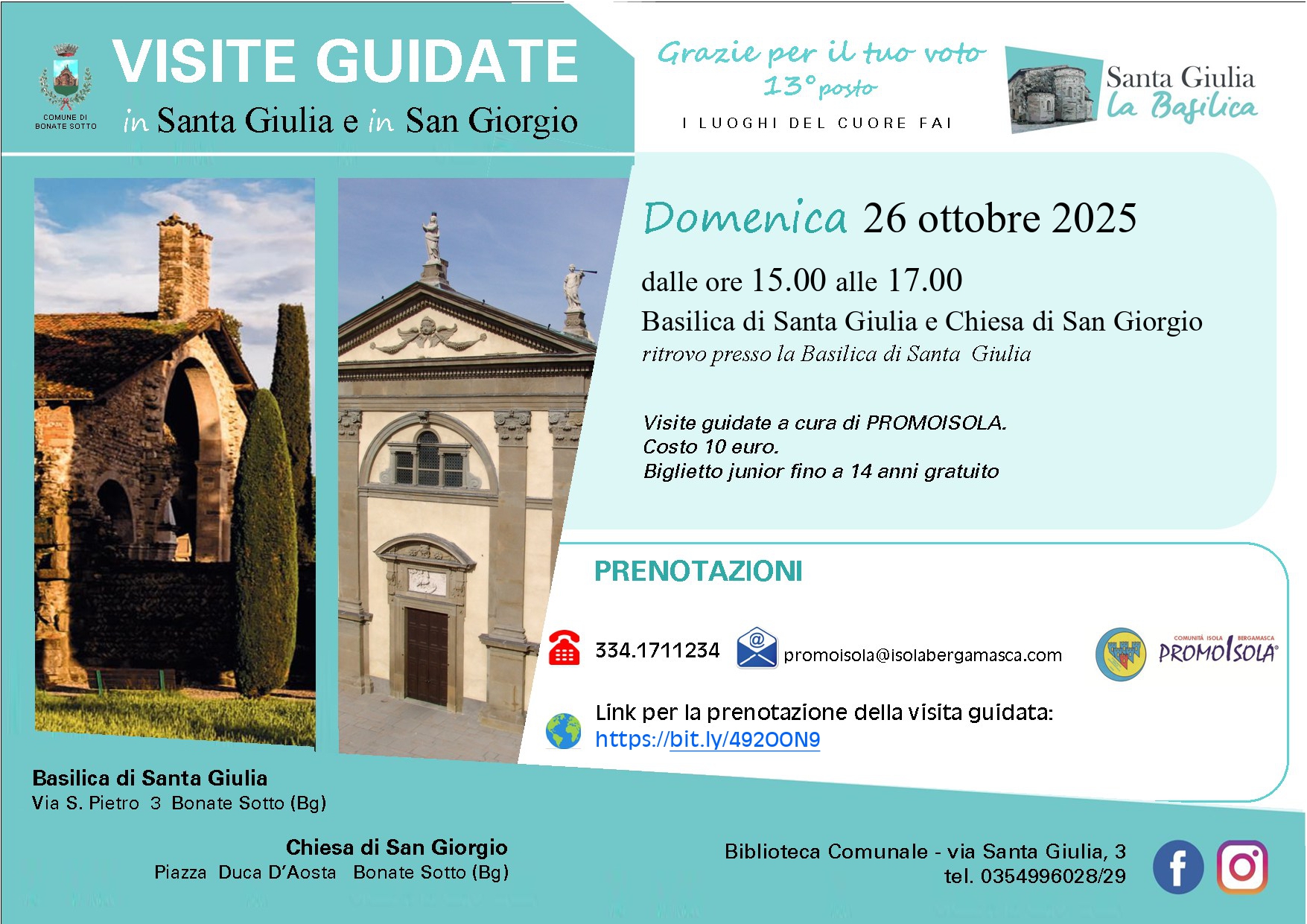 Domenica 26 ottobre appuntamento con la visita guidata a Santa Giulia La Basilica e la Chiesa di San Giorgio a cura di Promoisola.