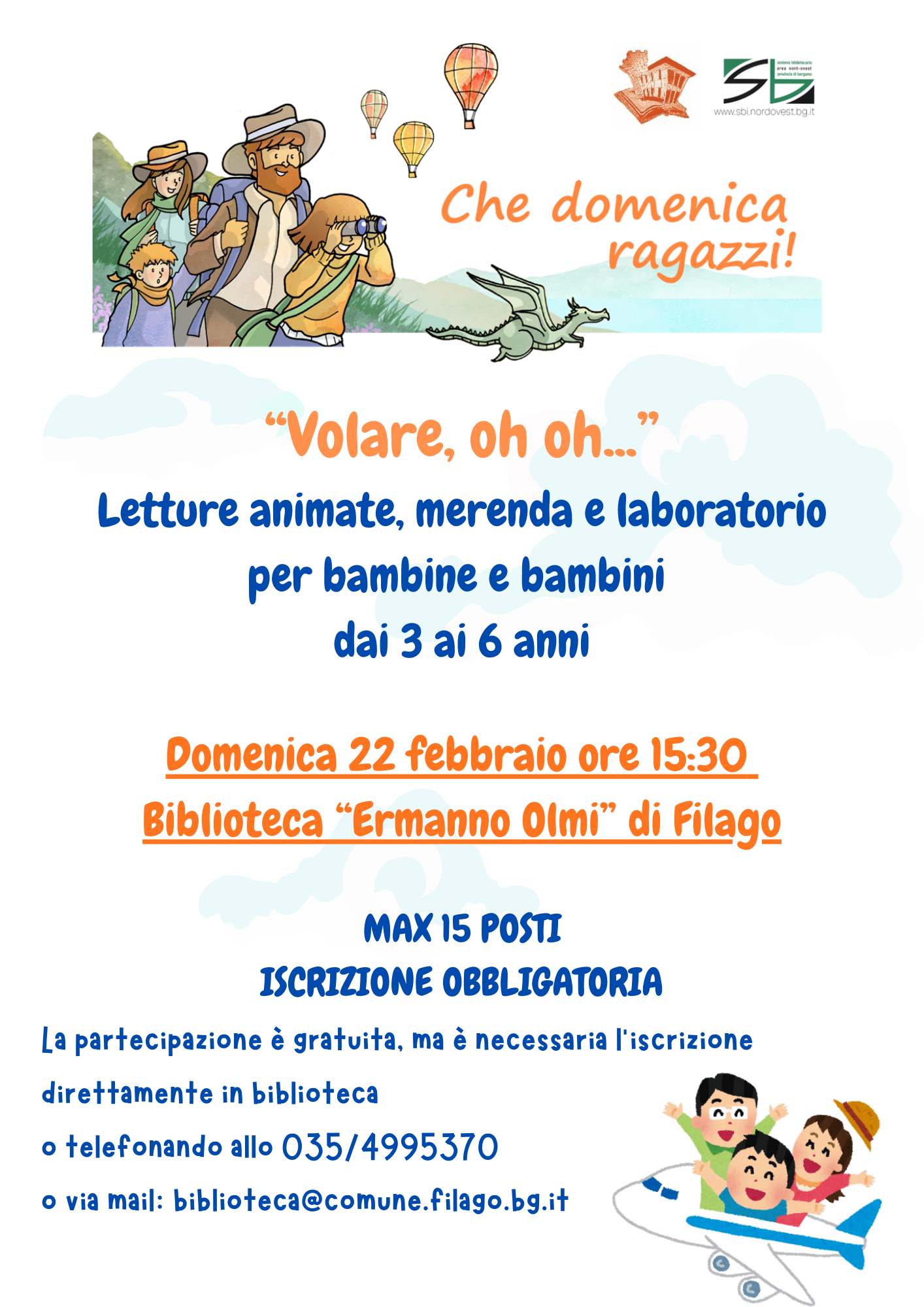 La Biblioteca Comunale “Ermanno Olmi” di Filago invita bambine e bambini dai 3 ai 6 anni a partecipare a “Volare, oh oh…”, un pomeriggio dedicato alla fantasia e alla scoperta.