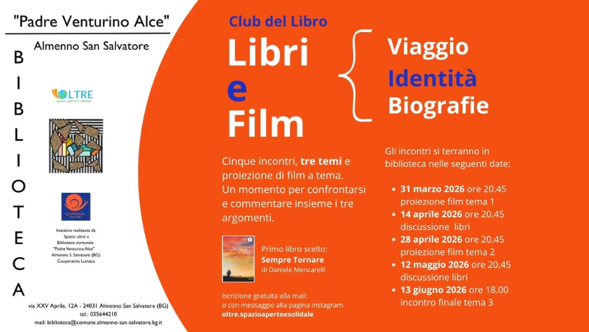 Finalmente ci siamo🥳 arriva ad Almenno il Club del libro!!! Grazie alla collaborazione con @oltre.spazioapertoesolidale da martedì 31 marzo inizieremo un piccolo cammino all’insegna di tre temi. Un’occasione per confrontarsi, discutere e magari anche conoscere nuovi libri e punti di vista. Per movimentare il tutto abbiamo deciso di inserire due serate in cui verranno proirettati dei film […]