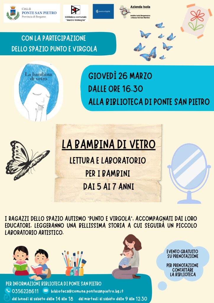 Presentazione della lettura “La bambina di vetro”, accompagnato da un laboratorio rivolto ai bimbi fra i 5 e i 7 anni.