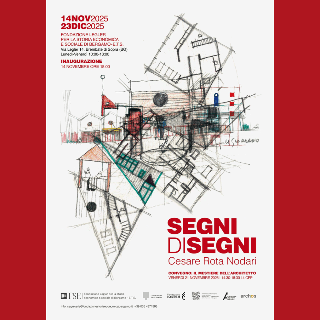 Dal 14 novembre al 23 dicembre 2025, la Fondazione Legler per la storia economica e sociale di Bergamo a Brembate di Sopra (BG) ospita la mostra 𝗦𝗘𝗚𝗡𝗜DI𝗦𝗘𝗚𝗡𝗜 dedicata all’architetto bergamasco Cesare Rota Nodari, figura poliedrica e visionaria. A cura di Edoardo Milesi, l’esposizione racconta un modo di fare architettura in cui il disegno diventa pensiero