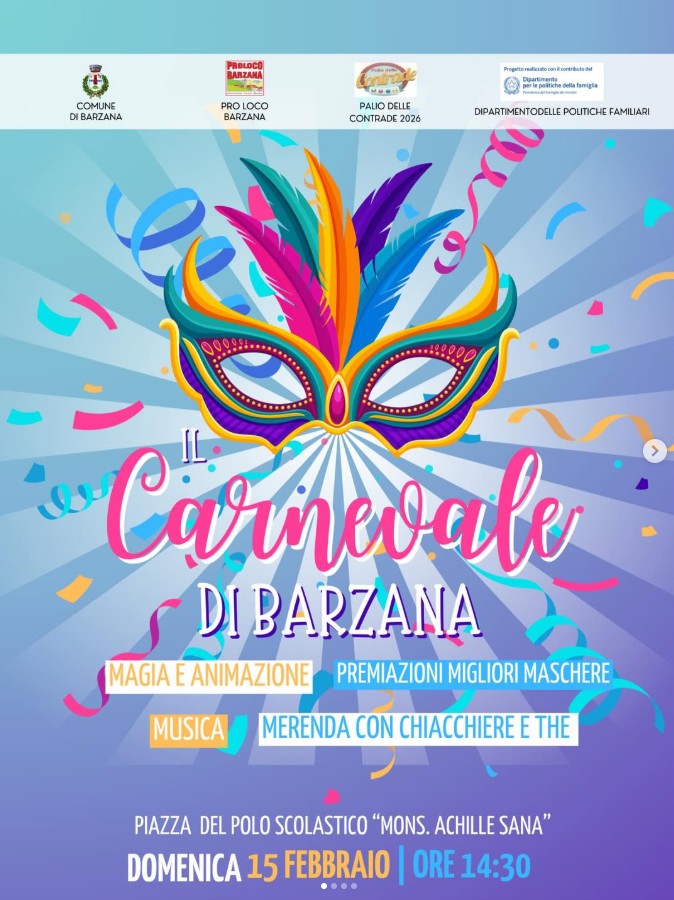 Carnevale a Cisano, domenica 15 febbraio. Ore 14.45 ritrovo presso il parcheggio delle scuole elementari, via Don Minzoni Ore 15.00 partenza della sfilata con arrivo alla struttura polifunzionale, via Dorando Pietri Servizio bar attivo. Intrattenimento e premiazione dei carri e delle maschere più belle. In caso di maltempo l’evento verrà rimandato a sabato 21 febbraio. […]